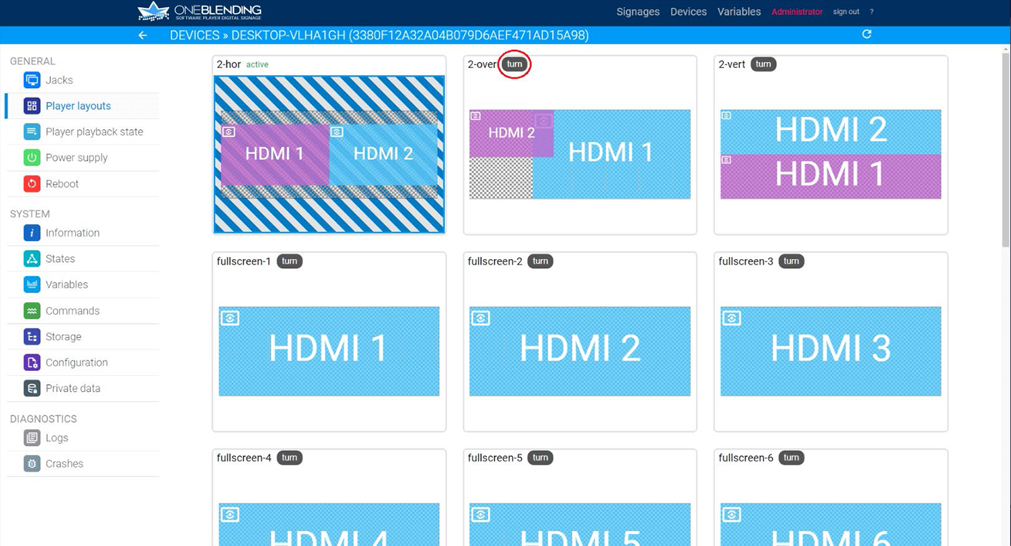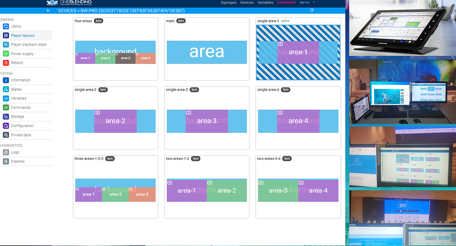 Свободное создание, размещение и назначение источника контента в зоны/окна видео-вывода, в рамках единого экранного поля. Постойная структура с возможностью наложения зон/окон. Сохранение проекта конфигурации зон/окон в прессеты. Web интерфейс переключения прессетов с транслирующимся контентом, в режиме реального времени.